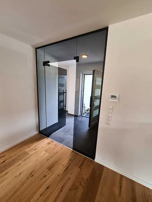Das Design Ihrer Wohnräume geht mit Glastrennwänden oder Schiebesystemen aus Glas ineinander über. Abtrennung bei maximaler Transparenz erreichen Sie mit Klarglasanlagen. Diskretion schaffen Ganz- oder Nurglasanlagen aus Milchglas und anderen undurchsichtigen Glasarten sowie Folien.